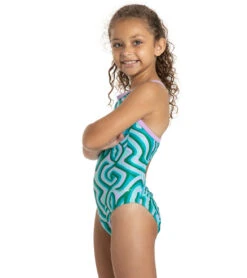 Style and sun-safety intertwine in this sassy swimsuit set! The fabric in the Tidepools Girls’ Hanalei Sunrise Surf Bottom Tankini Set protects your child from the harmful rays of the sun while maintaining a stylish design.