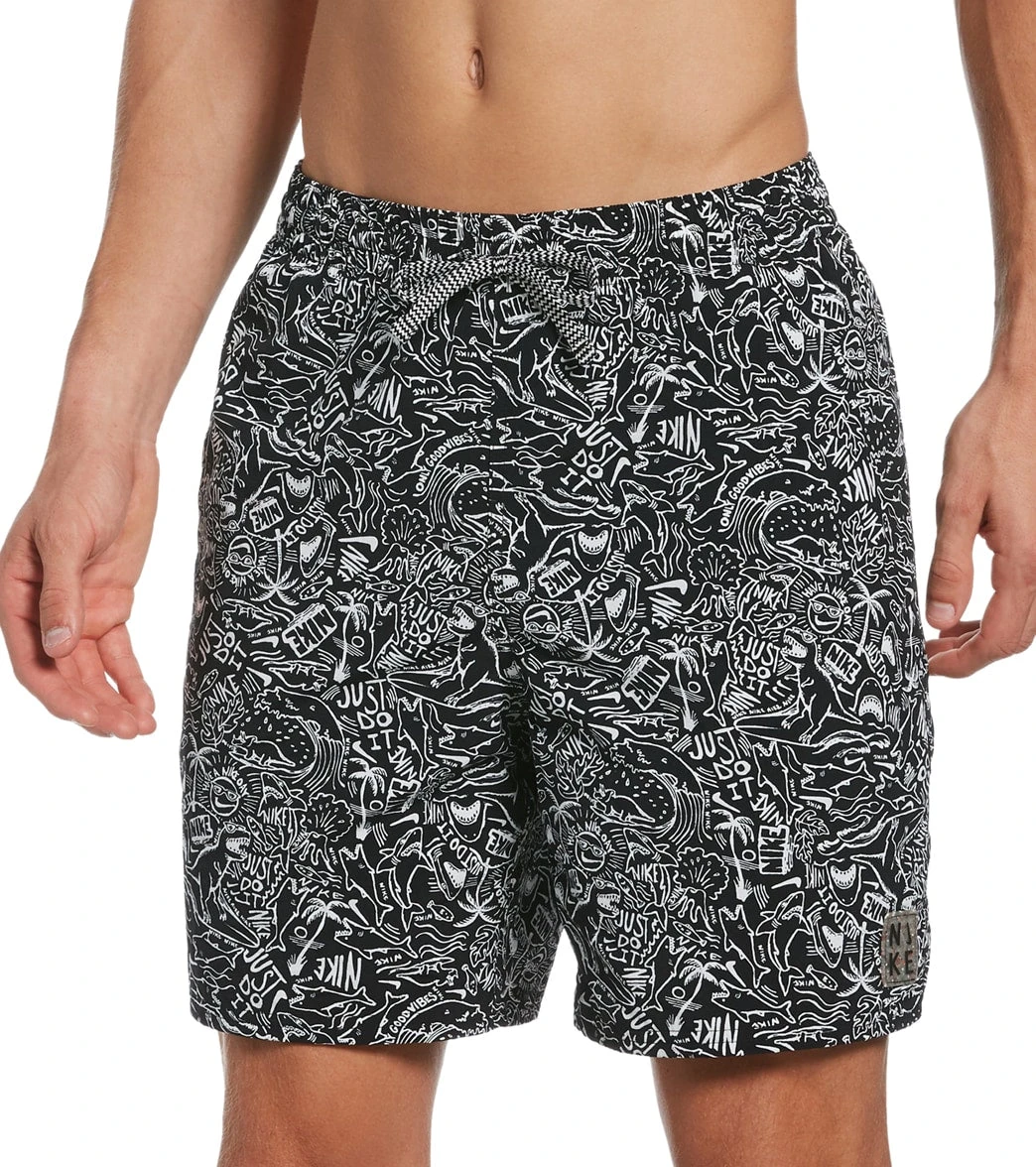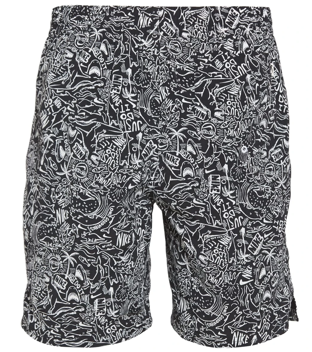 Hang out by the pool in the Nike Men’s 18″ Shark Swim Trunks featuring an allover graphic print.