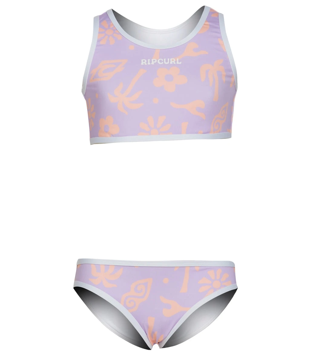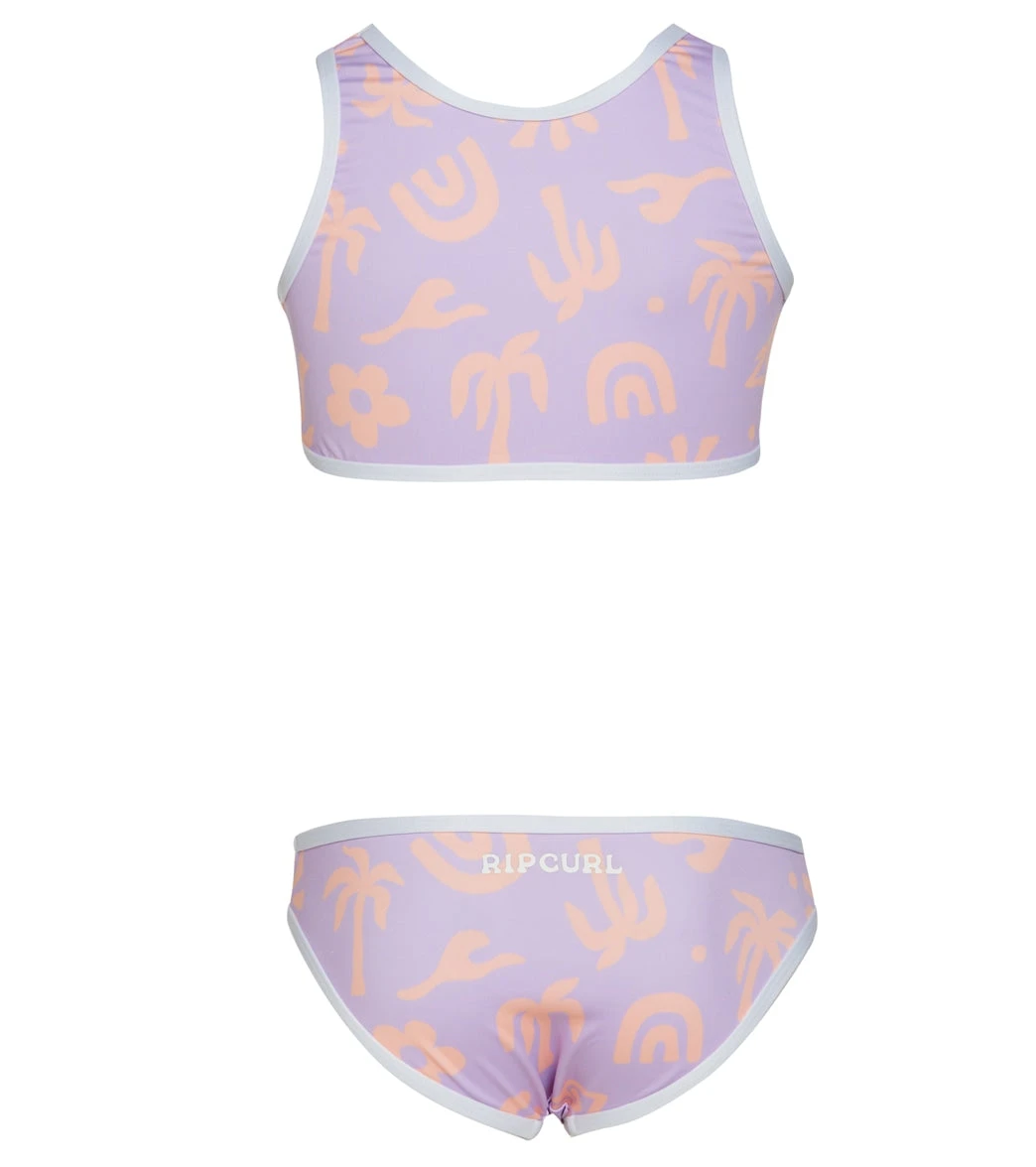 The Rip Curl Girls’ Low Tide Two Piece Bikini Set (Toddler, Little Kid) is a great swim set made from Extra Life Microfiber Lycra that gives long-lasting comfort, fit and shape. The bikini pant offers full coverage in a comfy standard fit. Featuring contrast binding that pop against all over pastel hues.