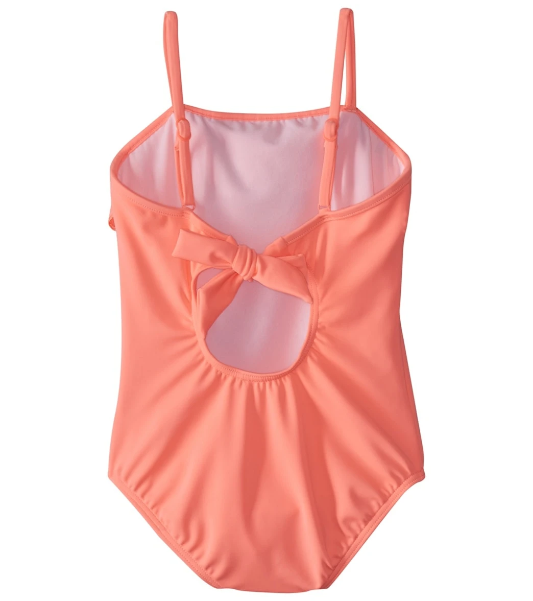 The Sweet Summer One Piece Swimsuit features a ruffled, shell embroidery detail and tube tank shape. This bathing suit comes in solid colors, perfect for mixing and matching with your favorite beach apparel.Â