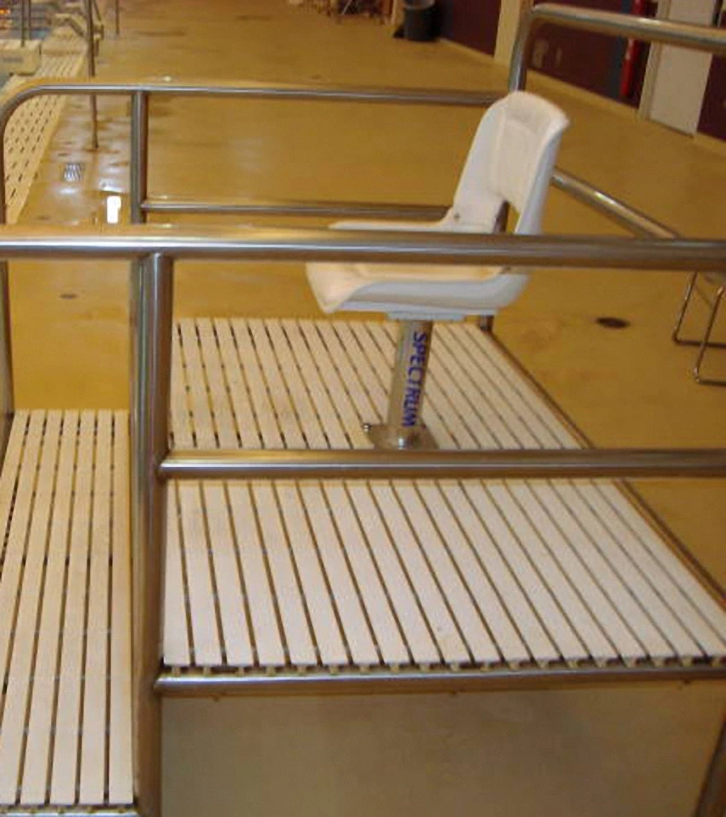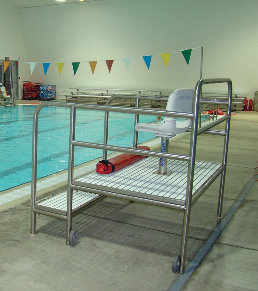 The Observation Station has a front entry and elevated viewing station. The wide front step brings the lifeguard closer to the pool edge.