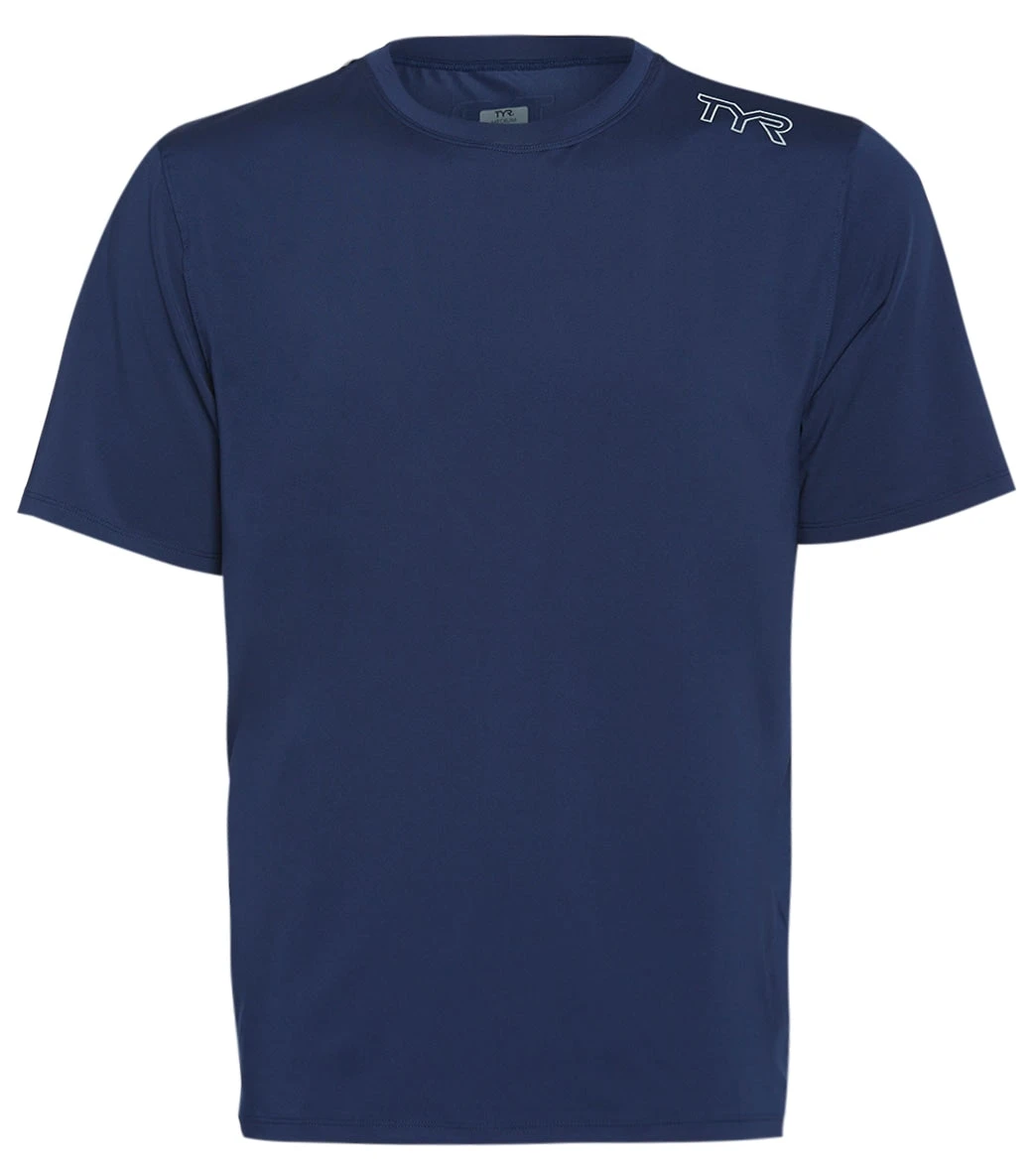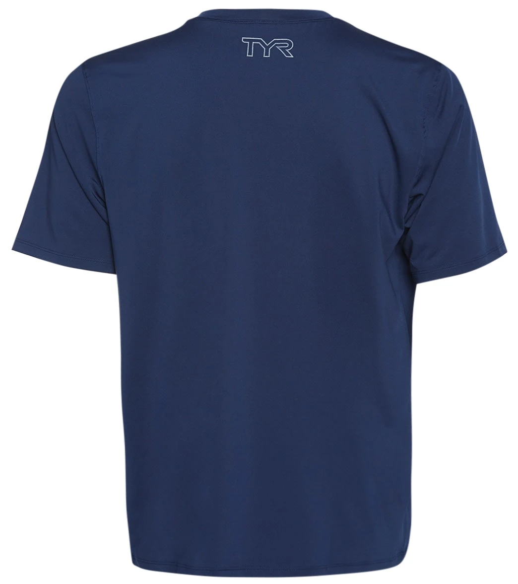 Paddle out in the TYR Men’s SunDefense Short Sleeve UPF 50+ Swim Shirt featuring sun protective fabric.