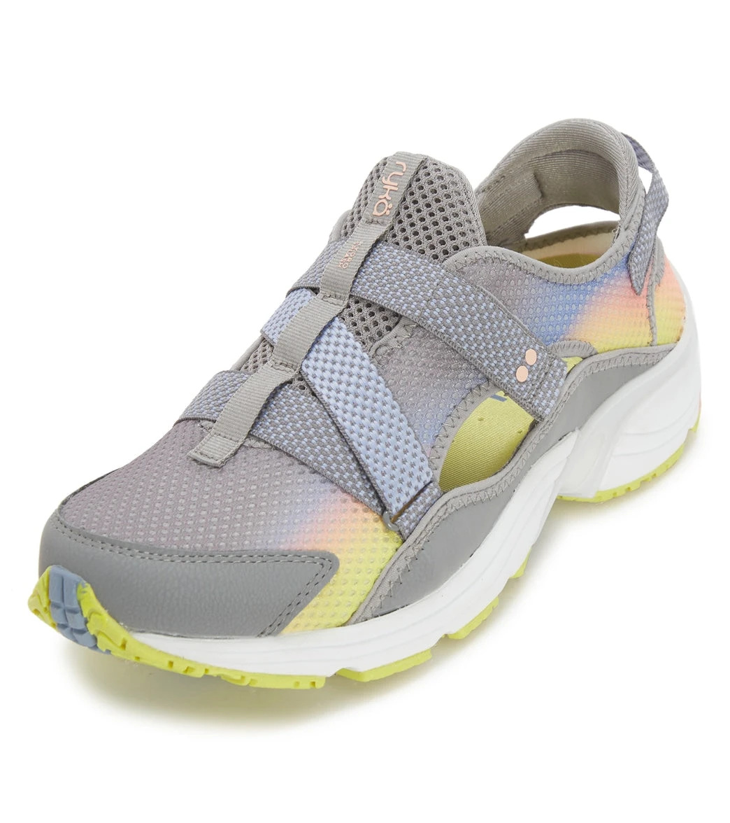 - Slip-on fit with padded heel strap and adjustable hook-and-loop strap at the side for a secure fit