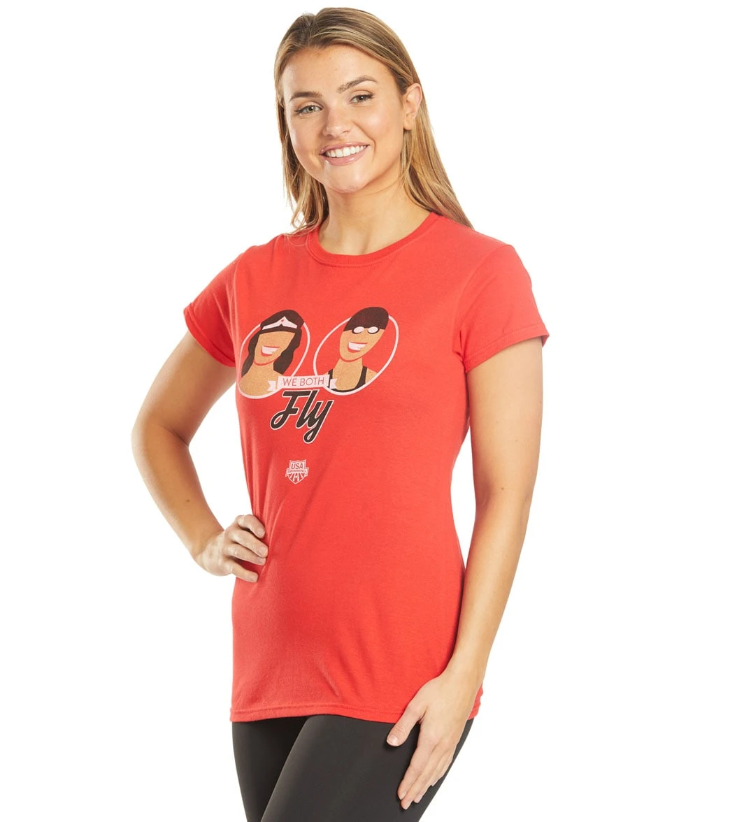 Show your team spirit, even outside the pool in the USA Swimming Women’s We Both Fly Crew Neck T-Shirt.