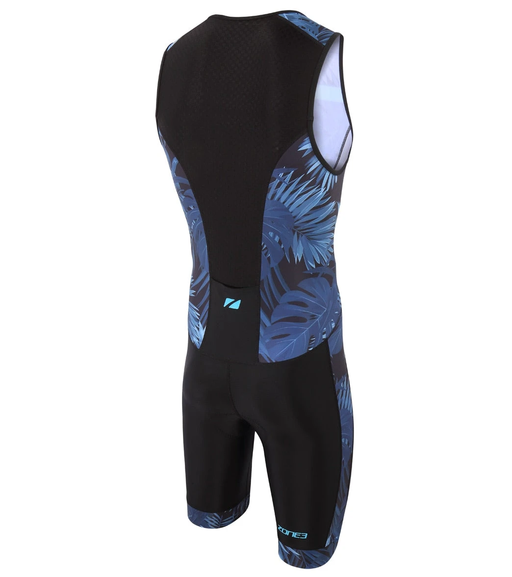 The Zone3 Men’s Activate+ Sleeveless Full Zip Tri Suit comes in eye catching printed designs with increased breathability, helping you look good and perform well in training, or on race day.